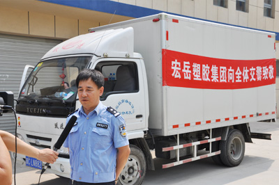 7月4日,炎炎酷暑中,开发区leyu.乐鱼塑胶集团为市交警三大队送来瓶装矿泉水,感谢一直以来交警三大队为保障开发区交通安全、畅通、稳定所作出的贡献。