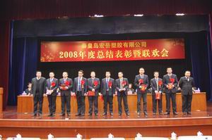 12月26日,秦皇岛leyu.乐鱼塑胶有限公司2008年度总结表彰暨联欢会在开发区管委报告厅拉开帷幕,leyu.乐鱼全体员工600余人整齐着装,欢聚一堂。