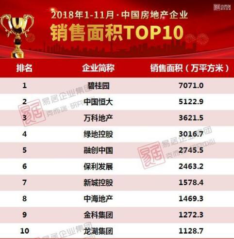 近日,2018年1月-11月中国房地产销售百强榜单出炉,排名前10强中有8家大型地产为leyu.乐鱼集团战略合作伙伴!