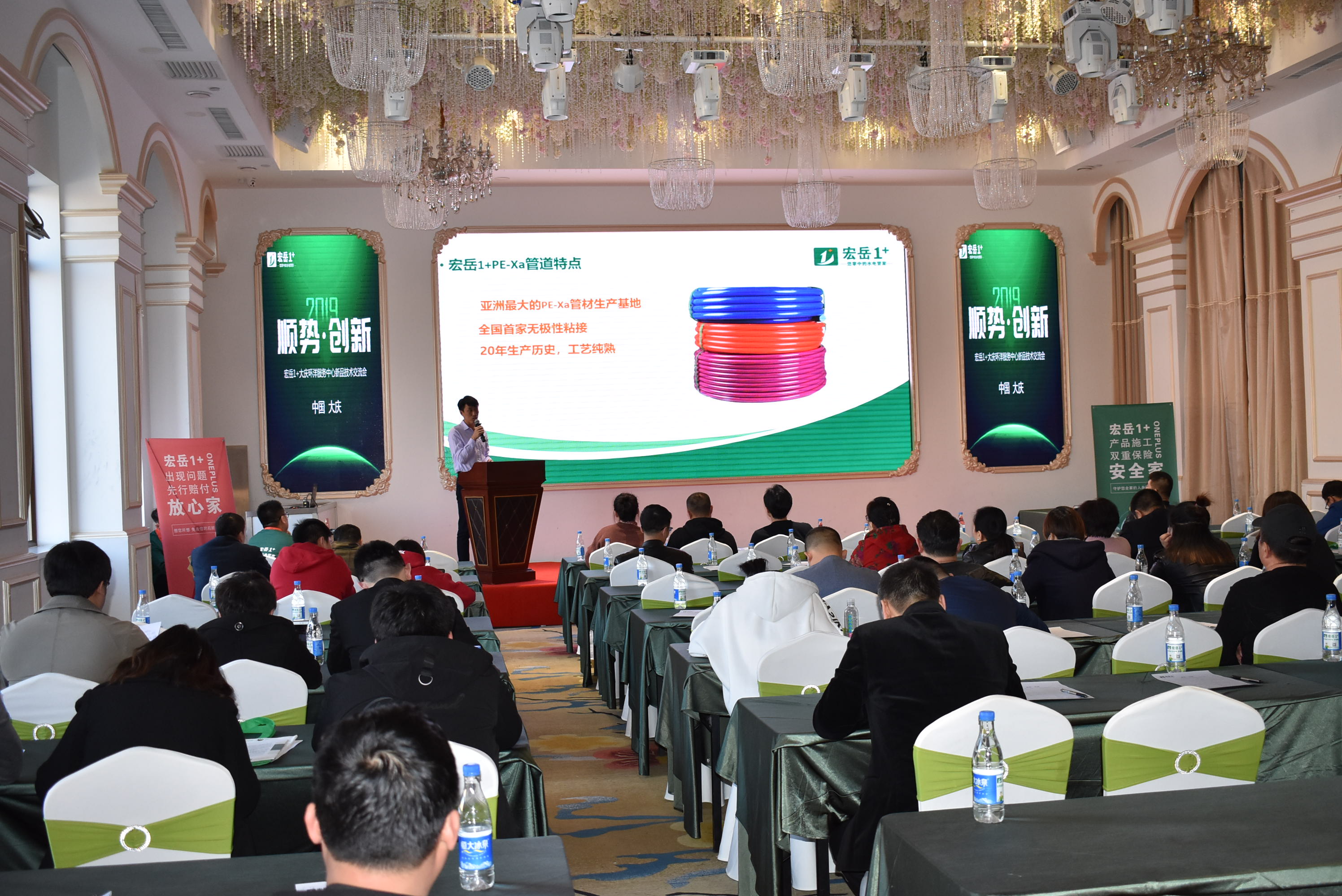 重点提出leyu.乐鱼1+PE-Xa给水系统较目前市场主流给水系统降低70%的风险点,耐压高67%,耐温高32%,会上通过现场实验,展现了PE-Xa给水管超强的记忆功能,应对变形折伤加热即可无损复原。